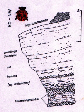 "Indeed it turned out that the entire Coal-period strata was full of  sea  animals, but they just never had anything to do with the actual coal  seams and  their closely accompanying strata.  Where ever they came in close proximity to  the coal, it was always as if  the rocks  with  sea  inhabitants  reached out like a stranger over the coal (and) only occasionally  positioned (far)  away  from it or lying under it,  exactly as  if  an  area  was  formerly  an inhabited  seabed  and then no longer, or as if it was again flooded from the sea at times,  approximately in a riparian zone.  It seemed as if there had been two types of  seas at that time: one entirely without animal life which simply  transported  the  coal (seams) and deposited the accompanying strata, -- and a second,  in which sea life bountifully blossomed, and these  (two) admittedly changed positions  in various places  from  time to time, however,  at  the same  time never mixing."