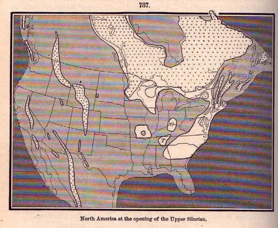North America, according to James D. Dana, 1894, one of the greatest geologists of his time. Note how Large some of the past "incursions" by the sea were. The white areas denote the dry land, while the shaded gray areas, the sea.